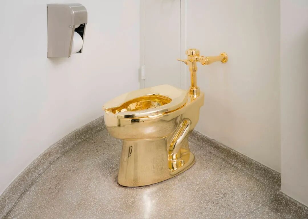 早先他轰动艺界的“金马桶”也是,2016年首次展出吸引上万游客参观。结果2019年再次展出后,居然被盗了,至今下落不明。