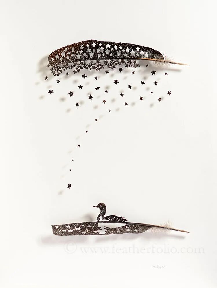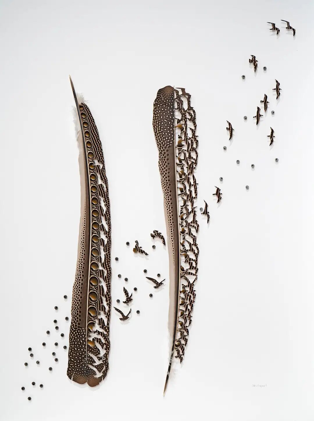 漂亮的羽毛作品,且具有诗意的美感,让人可以感受到视觉和心灵的双重震撼,不仅如此,巧妙的布局和构图,还形成一种近乎立体的感觉。接下来,我们就一起欣赏一下这位心灵手巧的艺术家,用剪刀在羽毛上,创作的精彩艺术作品吧。