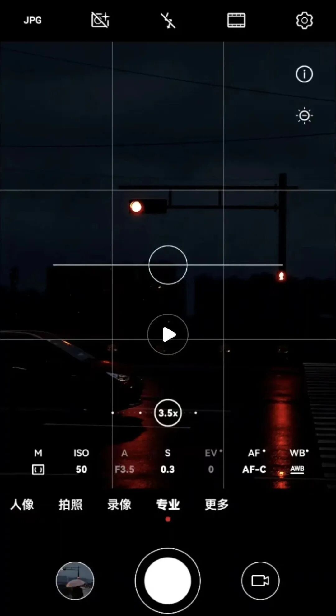 用专业模式拍摄,只调2个参数:感光度ISO 50、快门速度S 0.3秒: