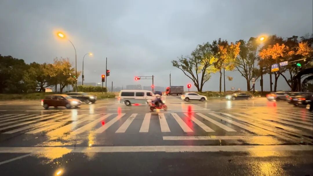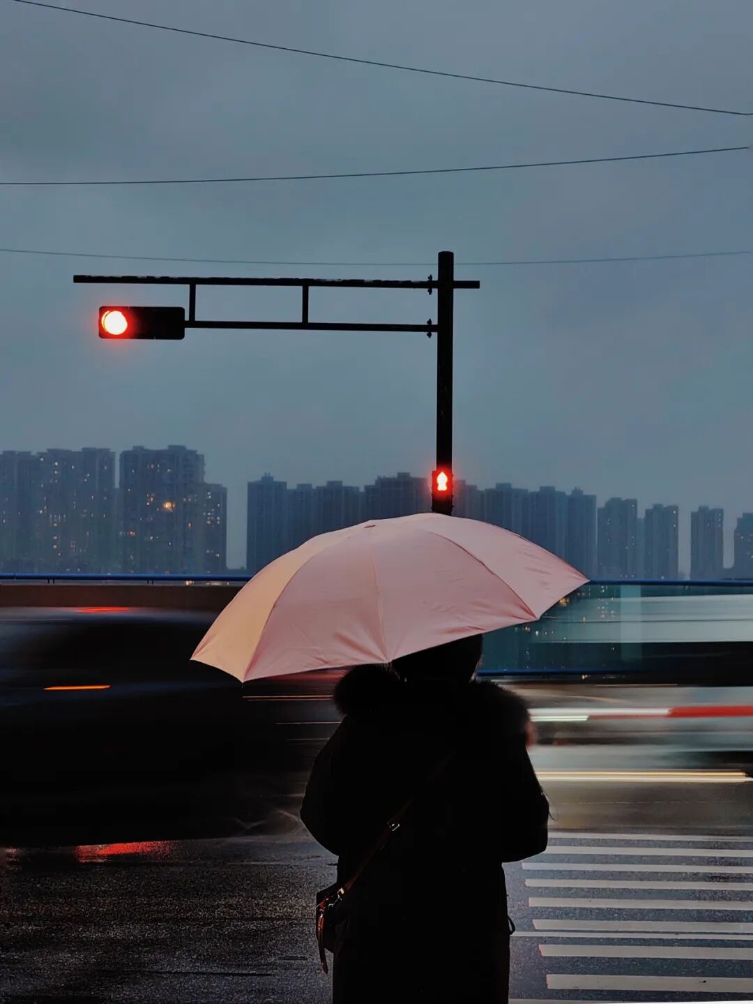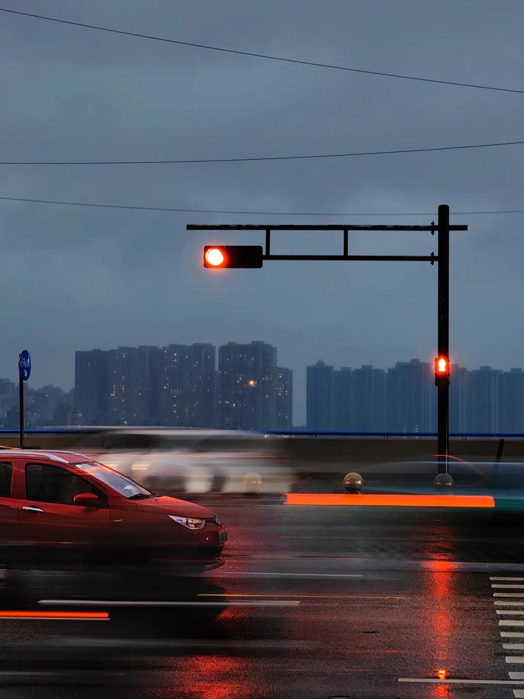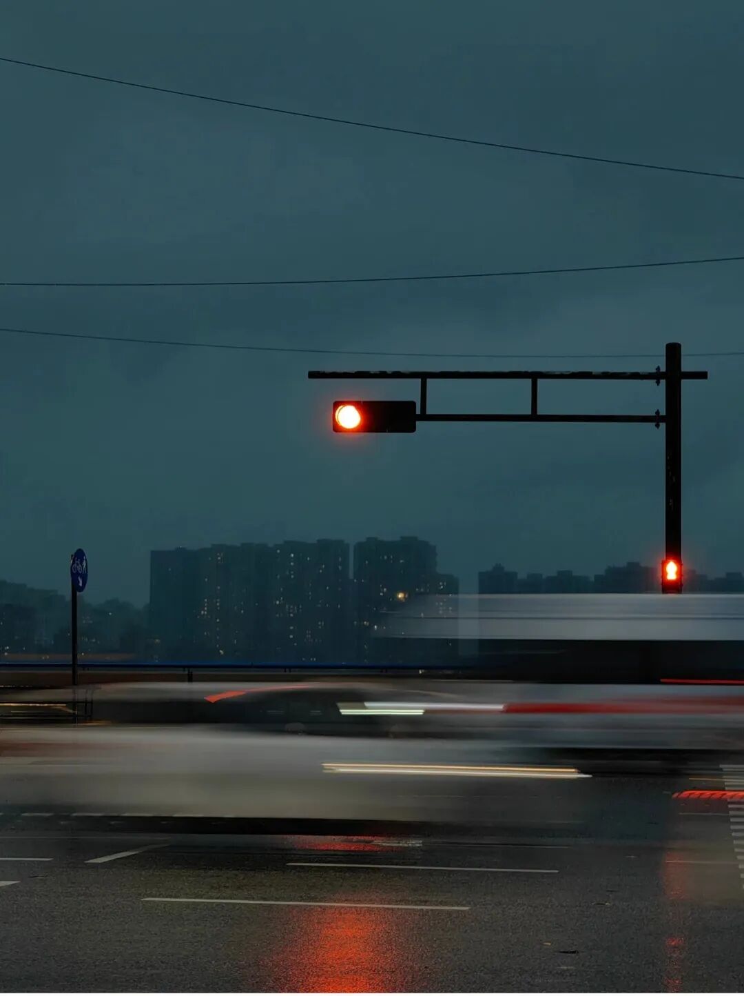 调整好参数后就等着车子经过,快速多次拍摄过往的车辆,再等到站在前景路面等车的人物作为前景,就可以拍到具有虚实对比的街头照片了。