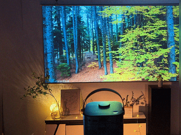 梯形校正 | 智能四点梯形校正,无需放在中间,在床边桌上、客厅柜子上,哪里方便放哪里,都能调出方正画面。