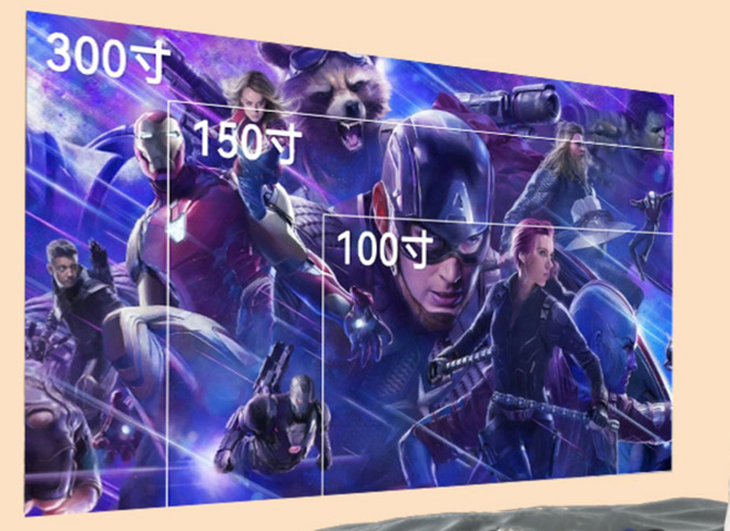 30-300英寸画面适配 | 根据投射距离,自动投射不同大小画面,比电视机省空间,且投放画面更大。