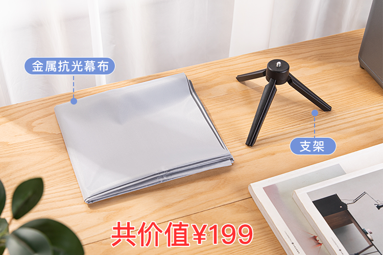 再送金属抗光幕布+支架(价值199元专属赠品)。