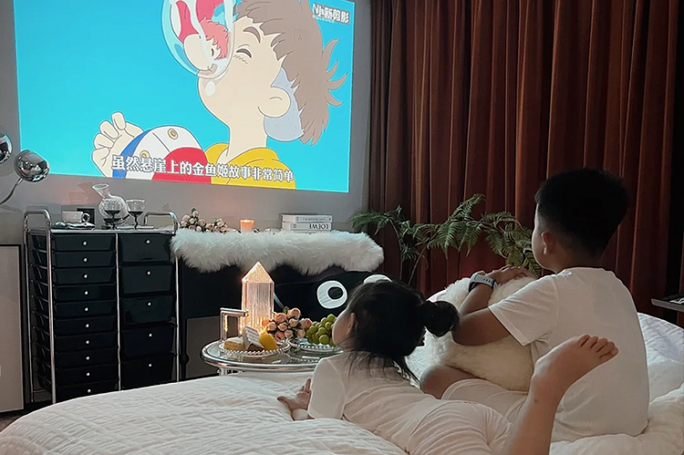 有宝宝的家庭,还可以用投影仪来给宝宝做早教、上网课、看动画。