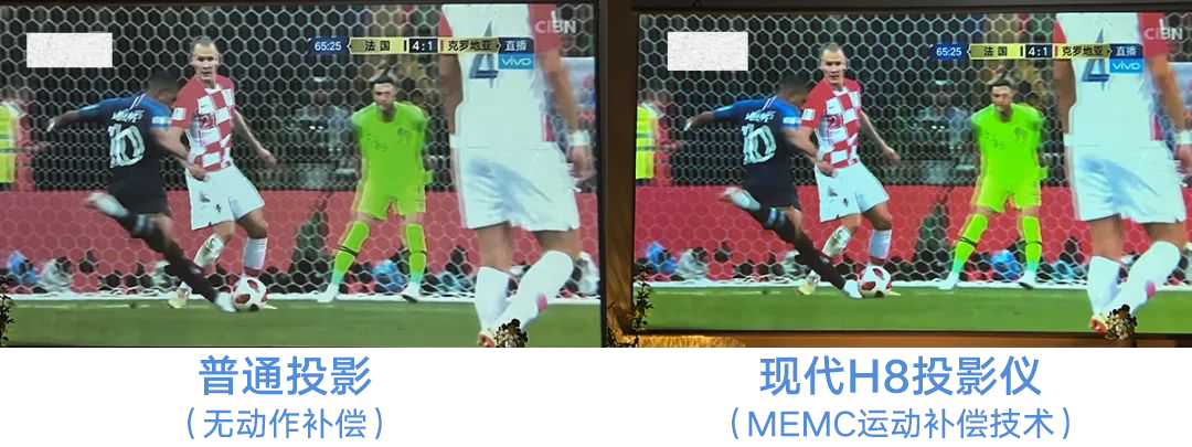 我们用普通投影仪和它做个小对比,不用我说,你也都看出区别。每个细微动作,都能被清晰捕捉到。