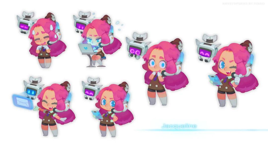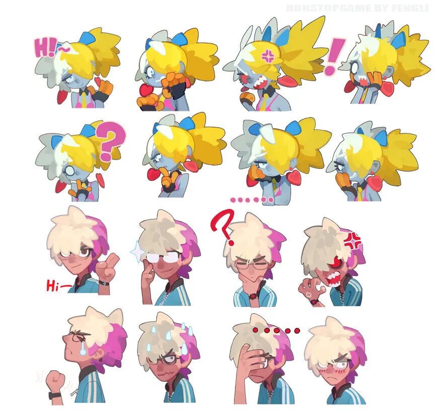 在这个游戏中,枫立也是负责人物立绘的绘制,Q版激萌的风格,人设构图很好很有设计感,下笔不拖沓,多元素很好的融合一起,设计带感诙谐。