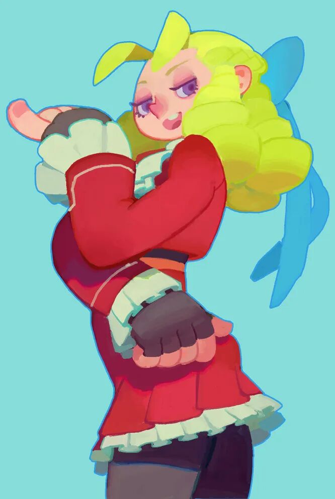 正如个人介绍中写的:“一个喜欢FTG的普通画师”,枫立尤为喜欢格斗类街机游戏,在私图中也画了很多FTG的同人,如《街头霸王》《拳皇》等,用色丰富鲜明,诙谐画风中又带着一股简洁利落感,让人舒服的同时又不失趣味性。
