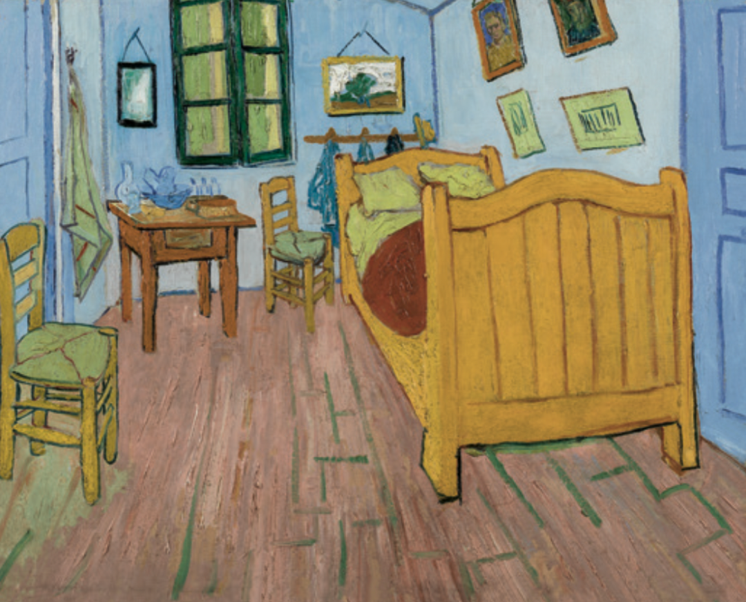 梵高《梵高在阿尔勒的卧室》 1888 年。图\《纸上美术馆-梵高》