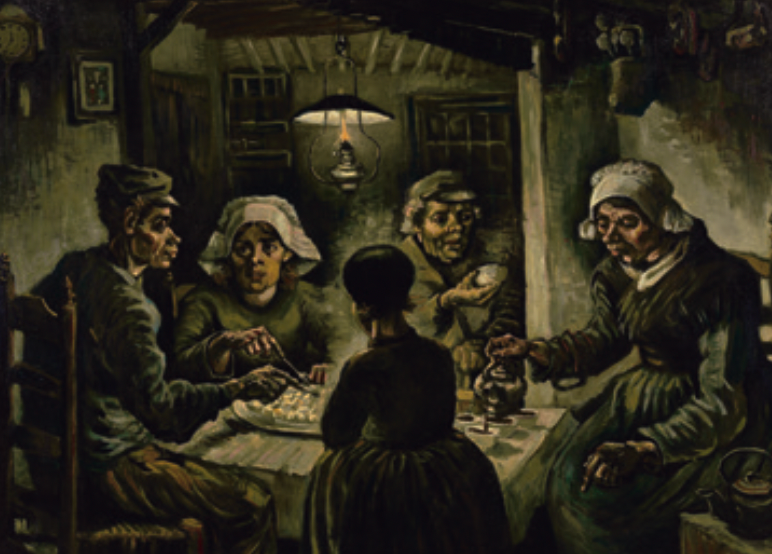梵高《吃土豆的人》1885年,这幅画被公认为是梵高的第一幅杰作。图\《纸上美术馆-梵高》