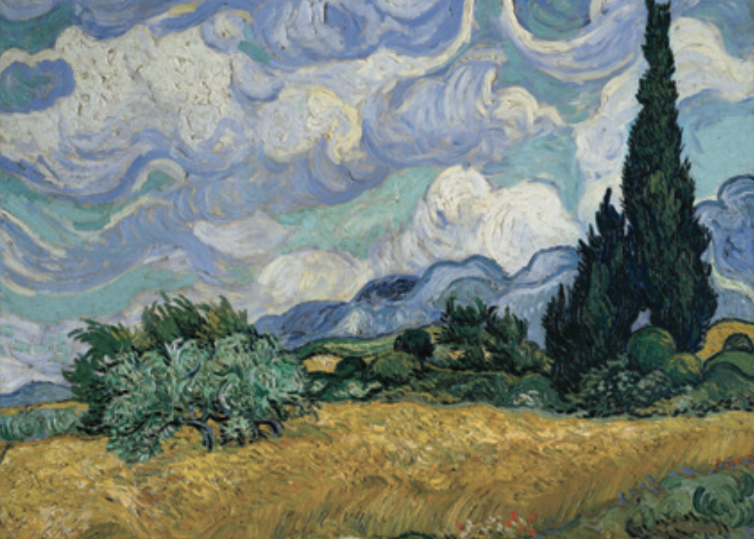 梵高《圣雷米的圣-保罗医院》1889 年,这是梵高在休养期间的画作,这段时期已经出现了略显扭曲的线条。图\《纸上美术馆-梵高》
