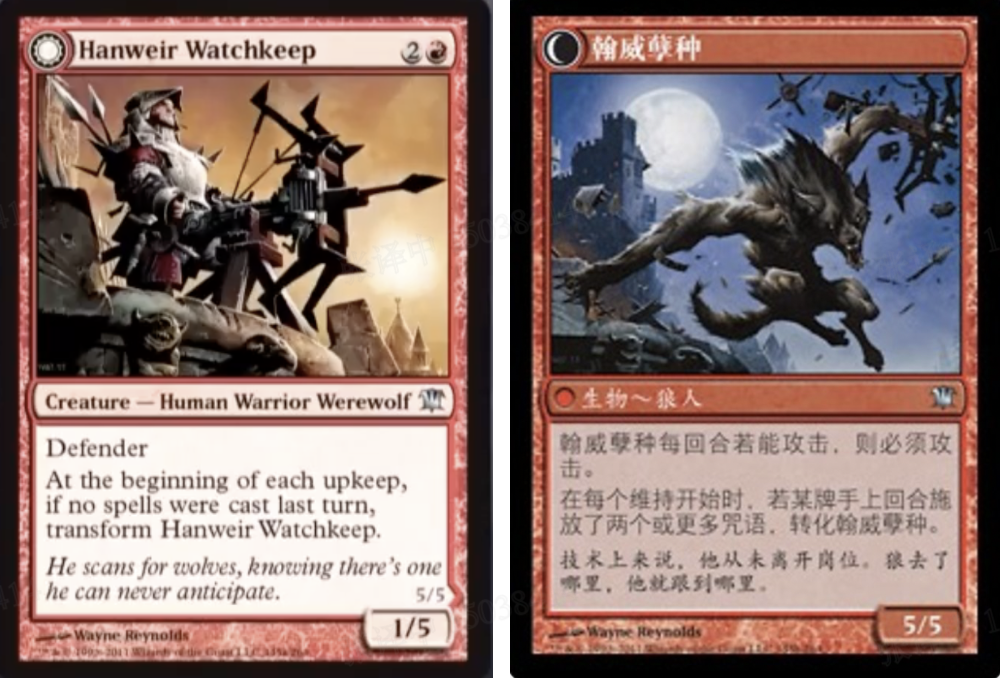 比如,传统卡牌都是单面,但《万智牌》有着双面牌的设计。这是因为在「依尼翠」版本,MaRo将「哥特式」的核心提炼为更具体的情感:未可知的恐惧。