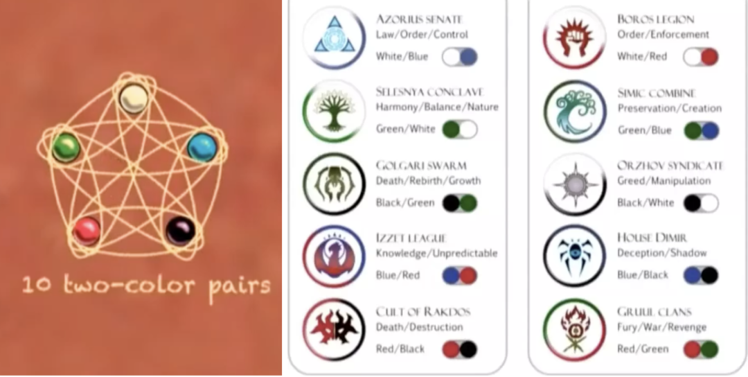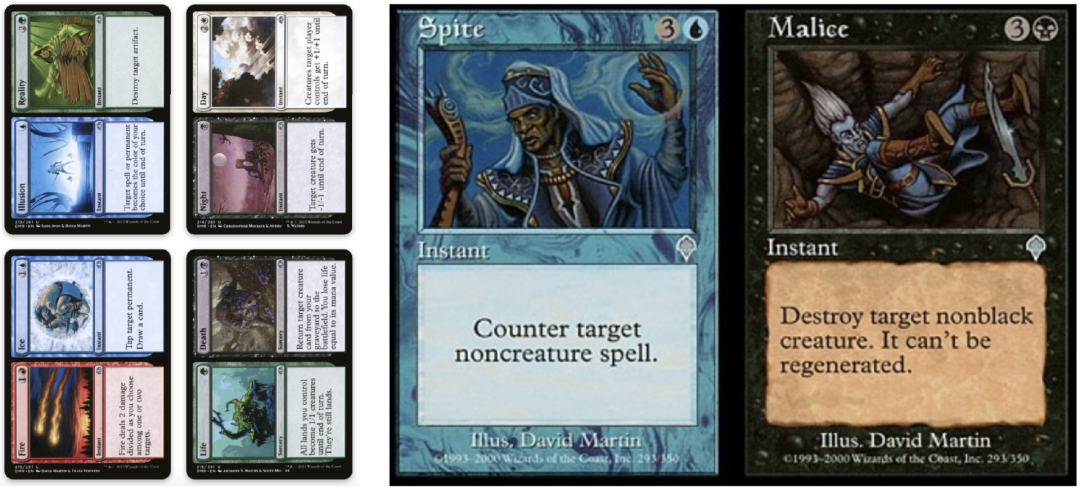 这并不是说一切都要从零开始设计。2000年「大战役」版本推出的多色设计,就是在原有的颜色设定上做了组合搭配——颜色是《万智牌》基本设定,类似于《炉石传说》的职业区分。多色牌也意味着将不同体系融合在一起,改变了玩家构筑卡组的思路。