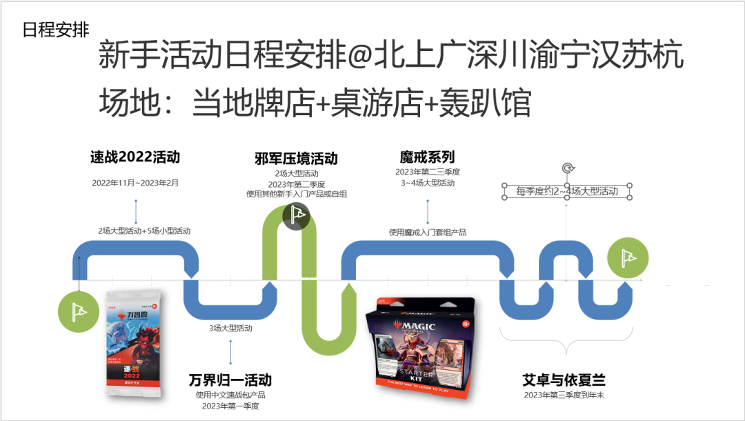 而且在近两年,国内也有不少推广活动。如「集石」万智牌组织者项目,便是在官方资源支持下,鼓励核心玩家围绕自己去举办推新活动,召集更多新玩家,做规则教学、牌组体验、进阶对战……现在「集石」的组织玩家已超300名,覆盖全国超过80座城市,并增加了「万智高校行」的推广项目。