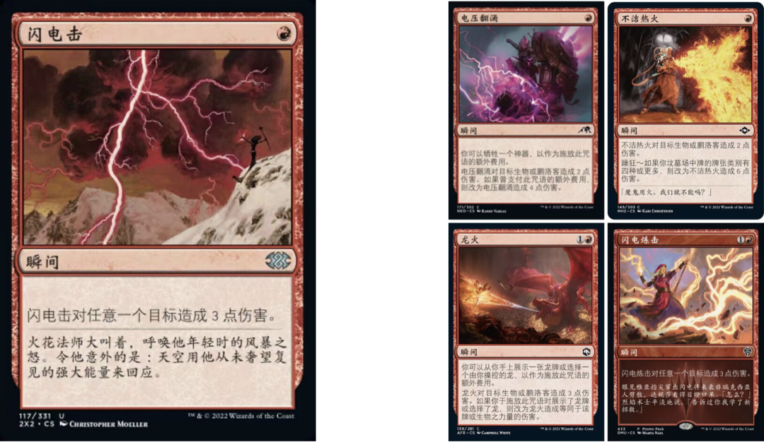 对此,一位老玩家做了有趣的解释:《万智牌》设计极简,它的每一张卡牌——费用、攻防、异能强度——都会框定在一个数据模型下。例如一费「闪电击」可以打任意目标3点伤害,它就是红色低费打伤卡牌的模型天花板,其他同类型卡会在其他功能上做调整,不会逾越。