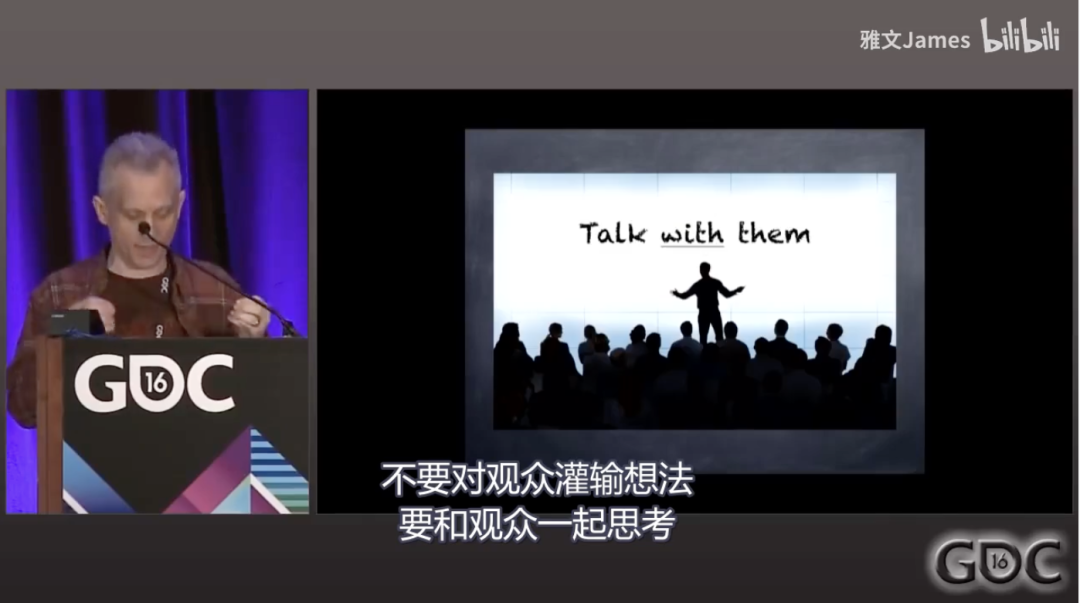 其实甫一开始,MaRo就强调不要与玩家的人性与直觉对抗,要理解产品在玩家眼中所呈现的美感与平衡,调度一切能刺激玩家感情的元素……整场演讲的话题,始终都面朝玩家。