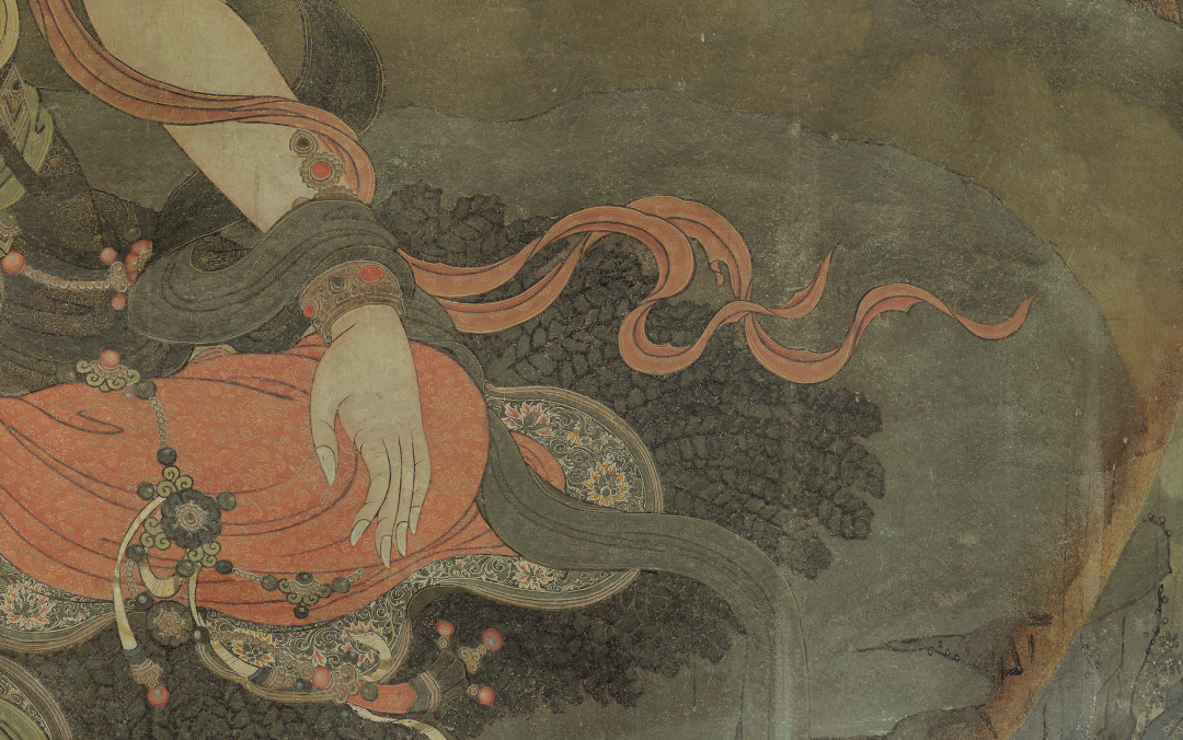 水月观音的薄纱披肩:“细如蛛丝,薄如蝉翼”。