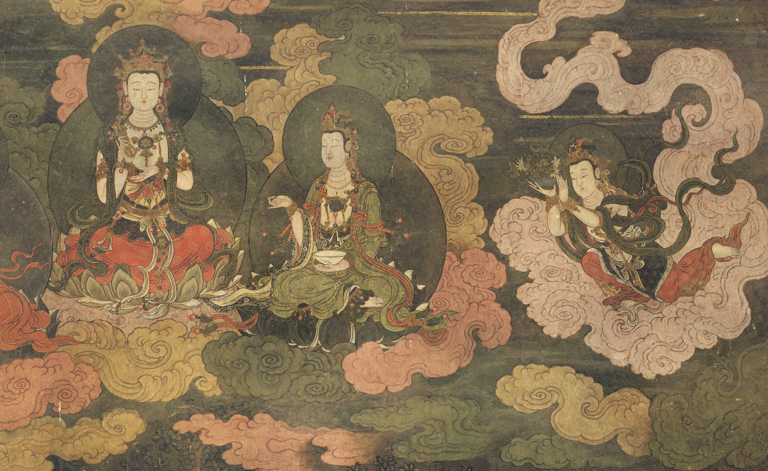 仅在菩提树天的服饰中就出现了凤舞、龙翔、牡丹、菊花、云团等近十种不同的纹样形式。