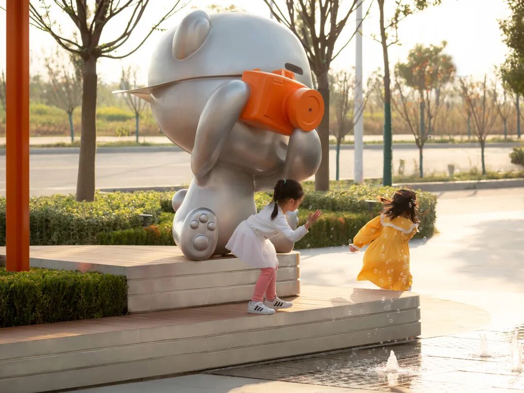 追逐那抹西下斜阳,与小熊亲密击掌,吹起绚丽的泡泡;