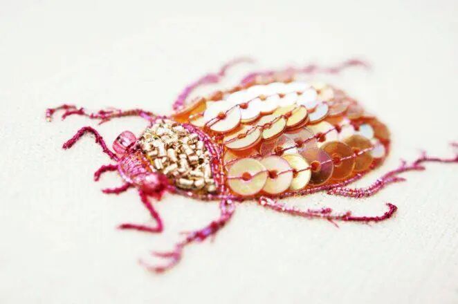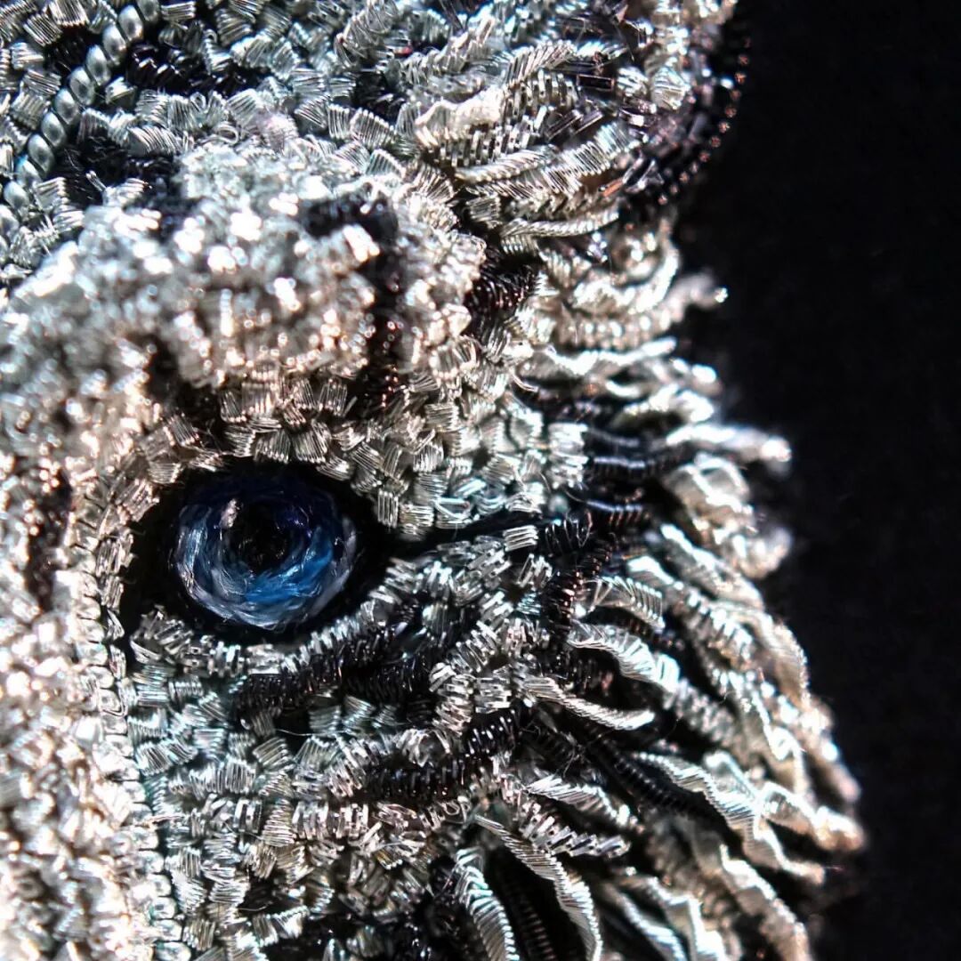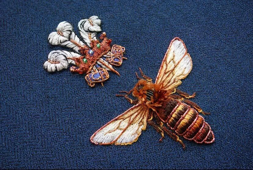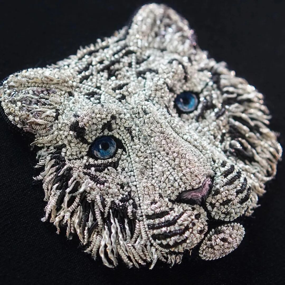 由于有插画和摄影功底,给予了她更多的灵感,也让自己的很多想法得以实现,用现代的材料和刺绣工艺,创作高定级别的装饰作品,是她最受欢迎的作品系列,运用金银铜等金属线,劳拉·巴弗斯托克刺绣出了复杂且精致的3D动物和昆虫,从铜蜜蜂到金狮子,她绣出了每种生物的独特纹理,生动极了。
