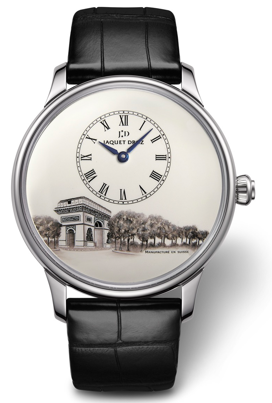 雅克德罗微绘巴黎凯旋门时分小针盘腕表