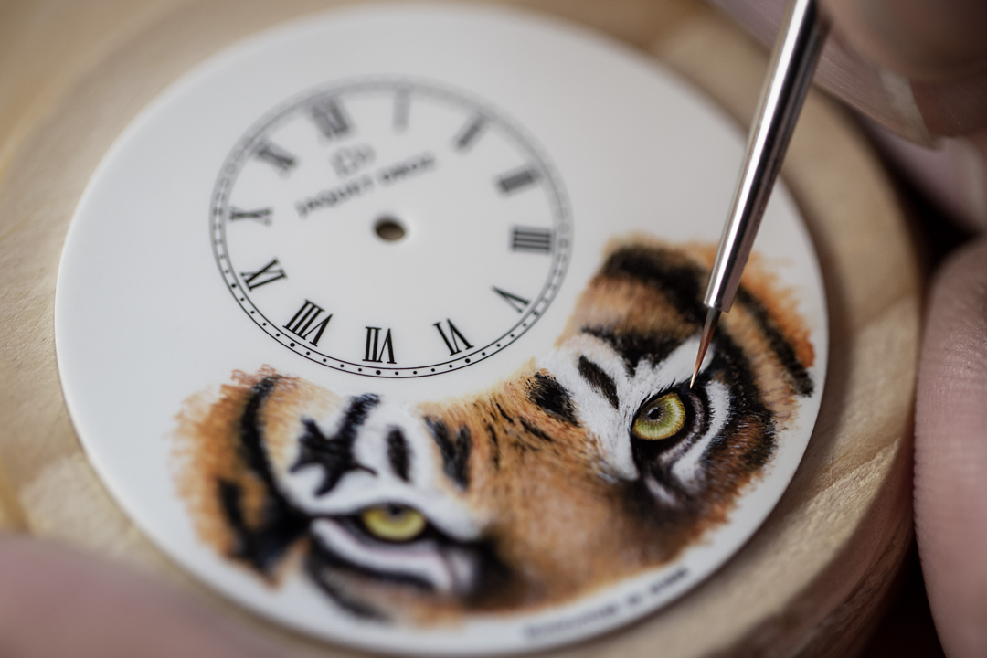 雅克德罗微绘老虎时分小针盘腕表——斑斓猛虎