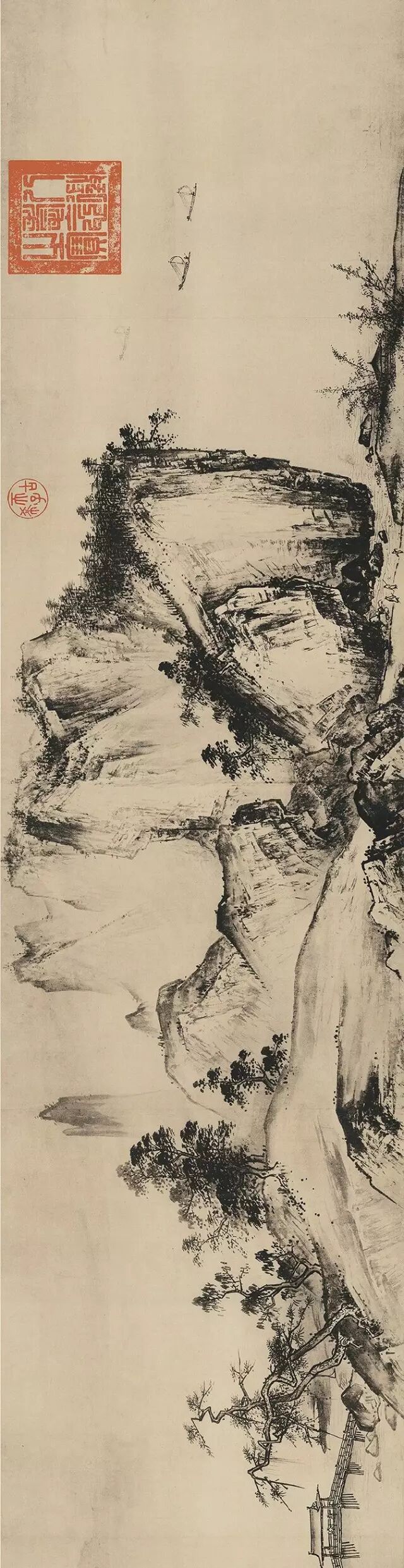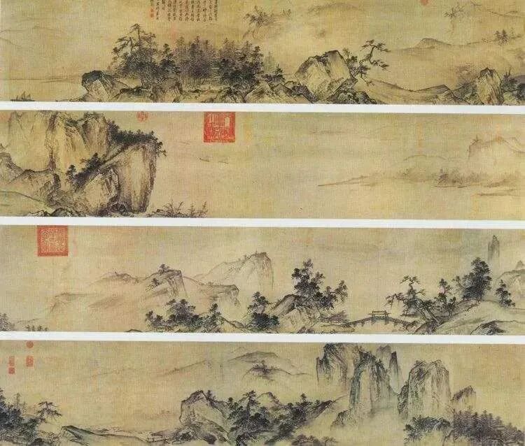 《溪山清远图》,南宋画家夏圭创作,绢本水墨,纵46.5厘米,横889.1厘米,现藏于台北故宫博物院。