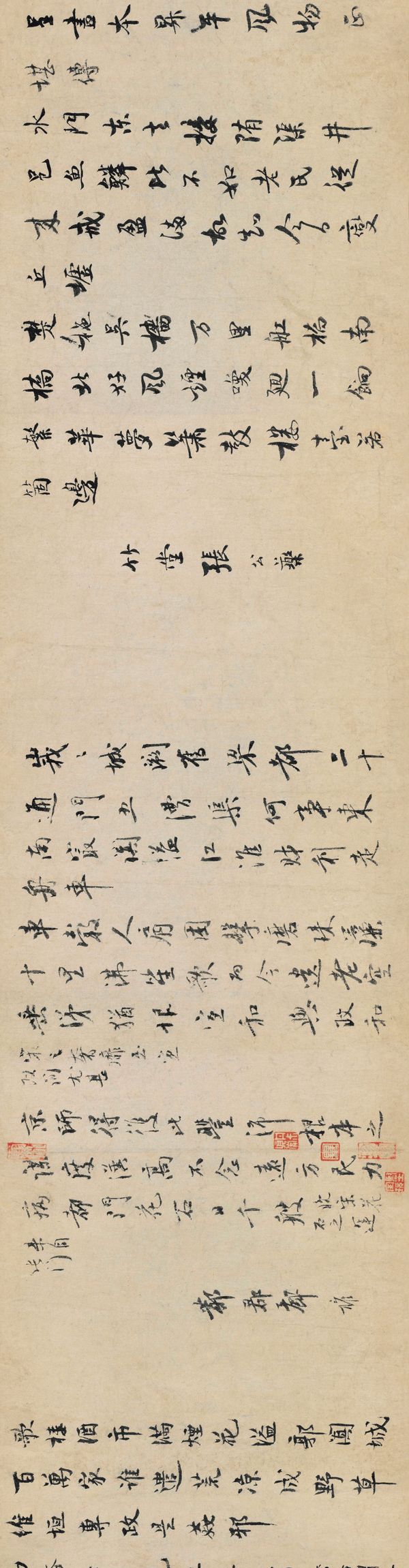 第二至第五段的题跋者也都是金代文人,分别为张公药、郦权、王磵和张世积。他们未见过汴京的繁荣,借着对画面的解读来表达怀古之情。