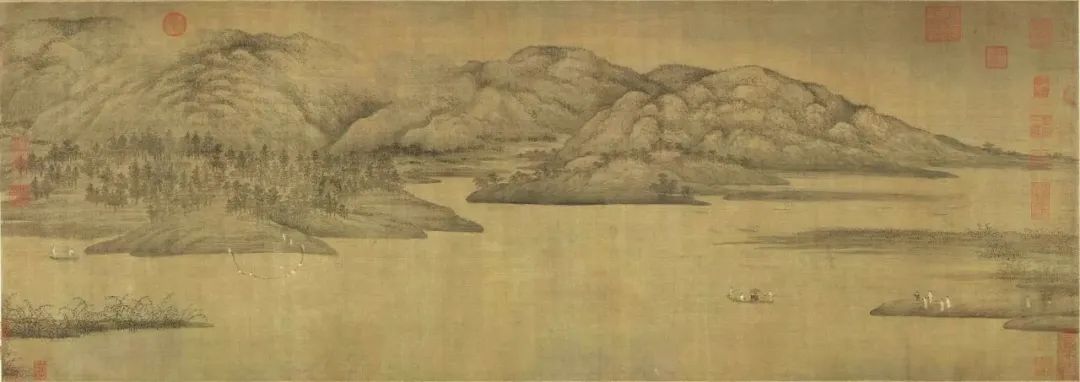 五代 董源 潇湘图卷 全卷  绢本,设色,纵:50cm,横:141.4cm