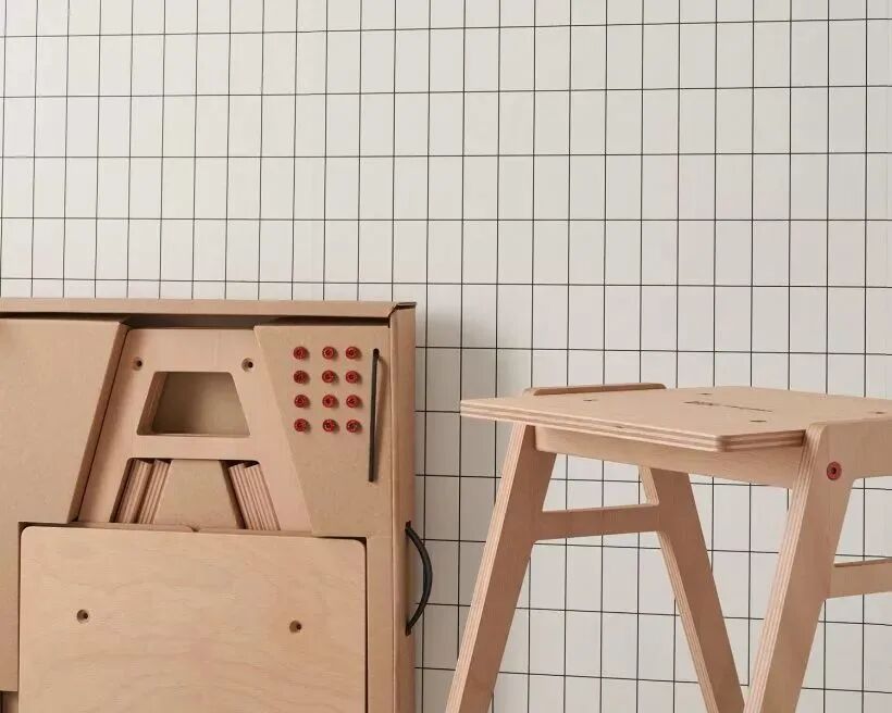 这把椅子采用的是扁平包装设计,把所有椅子的组件装进一个扁扁的手提式披萨盒里面,有效解决了不规则家具产品难运输的问题,极大方便消费受众。