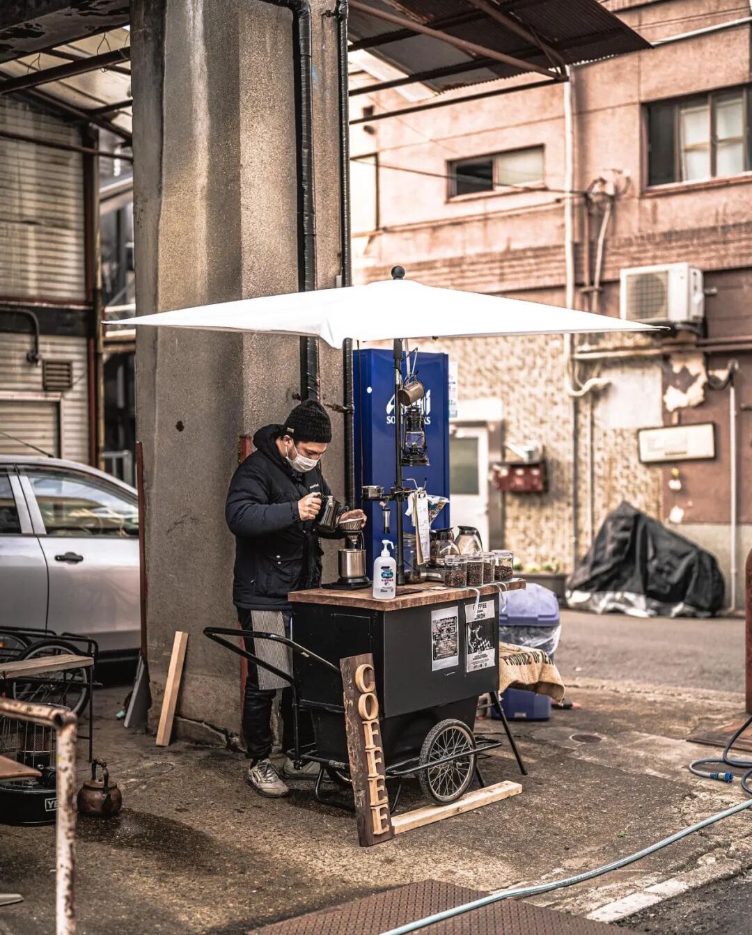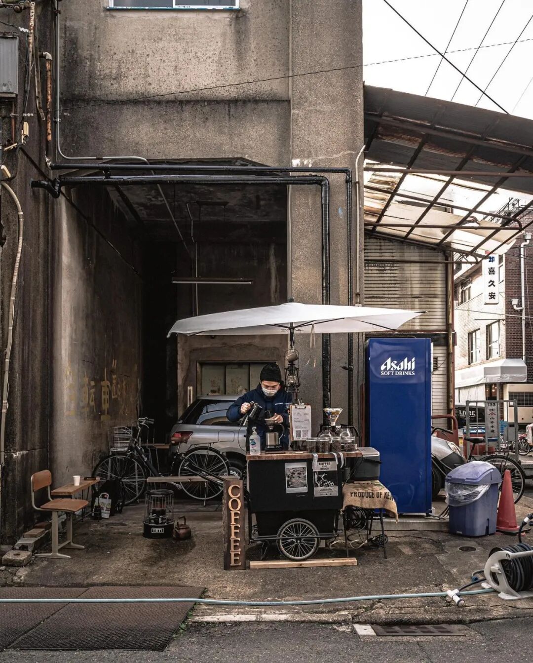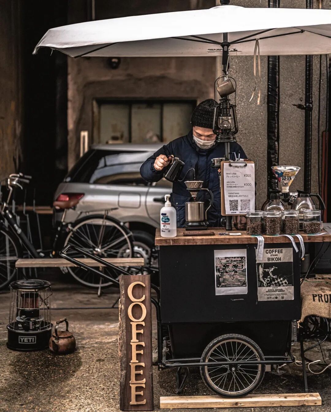 “BIKOH微光”是日本京都一个批发市场外的一家移动的咖啡店。这家咖啡店每天凌晨5点准时开张,上午9点结束营业。主理人Jackie说,他之所以取这个名字就是为了让人们在不要丢掉信心,做一个微小但有力量的自己。