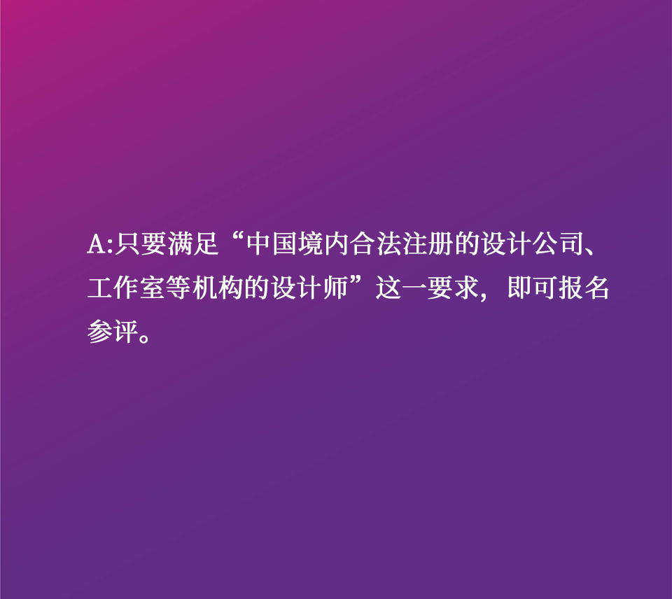 面向中国境内合法注册的设计公司、工作室等机构的设计师报名参评