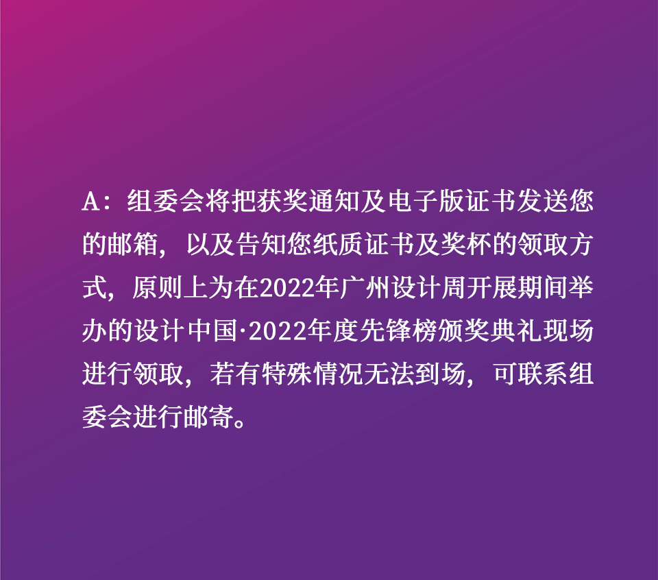 如果以上Q&A仍未解答您在报名时存在的疑问,您还可以直接添加设计中国组委会联系人的个人微信随时咨询,我们将尽可能为您提供详尽且清晰的解答。最后,感谢您对设计中国年度先锋榜的关注与支持,同时也诚挚地祝愿您报奖顺利!