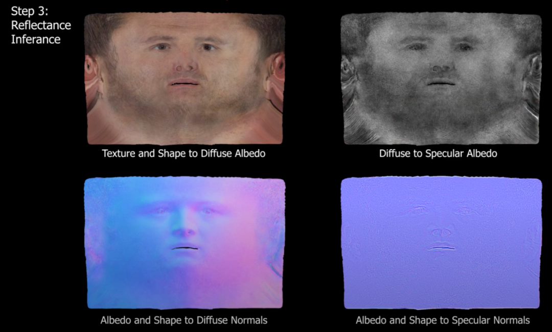 该模型使用了高分辨率网格和反射纹理,包括漫反射反照率、镜面反射率、漫反射法线、镜面法线等,可与大多数开源或商业渲染器一起使用,能够实现在各种照明环境中渲染重建的数字头像模型。