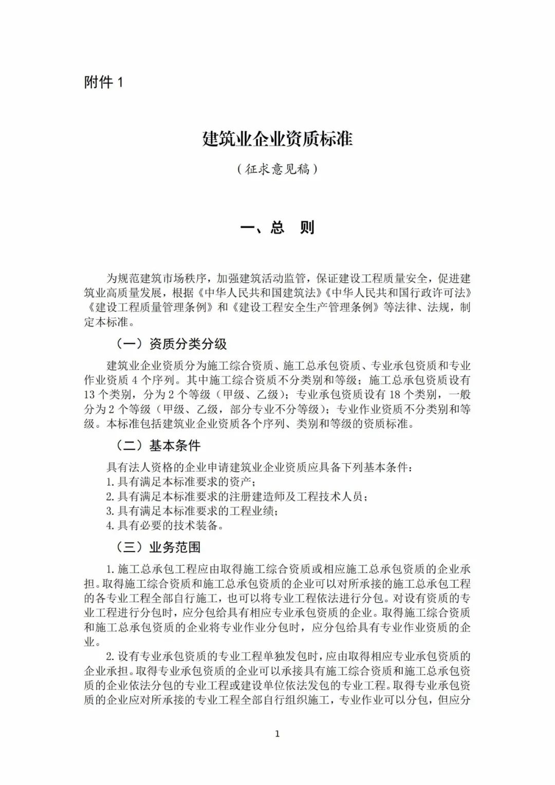 ▌附件1:《建筑业企业资质标准(征求意见稿)》