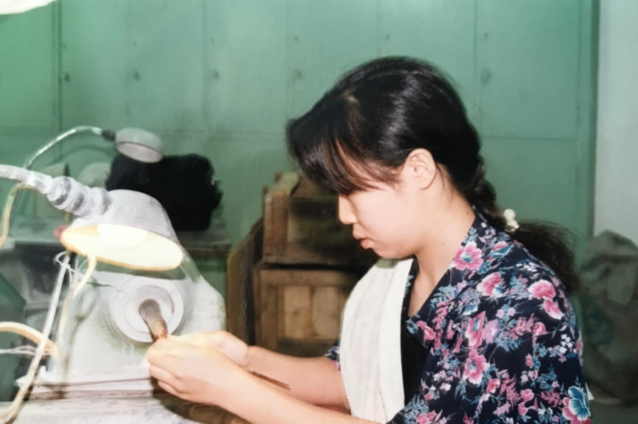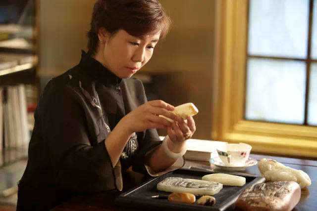 最新文章2024-02-24 一件作品拍出1495万天价,拿下玉雕界“奥斯卡”,这个低调的女人藏不住了··· 2017年秋,一件玉雕版千里江山图《中华祥瑞图》横空出世; 一举摘得有玉雕行业奥斯卡之称的“天工奖”金奖。 《中华祥瑞图》 两年后,以敦煌壁画为灵感的玉插牌《敦煌情》,不仅夺得“天工奖”金奖; 还斩获中国工艺美术最高奖“玉器百花奖”金奖,成为名副其实的“双料金奖王”。 《敦煌情》 消息一出,在玉雕界掀起了极大轰动,这可是所有匠人一生为之追求的荣耀! 大家纷纷猜测到底是谁获此殊荣,让人想不到的是: 这两件作品竟出自同一作者之手,而且还是位巾帼不让须眉的女大师。 苏然 中国工艺美术大师 中国玉石雕刻大师 要知道,在以男性为主宰的玉雕圈,自古以来女玉雕师就没几个,更何况苏然这种级别的大师,更是凤毛麟角。 “宫廷玉雕”正统传人,非遗京派玉雕大师,年轻的中国工艺美术大师,国家级玉雕大师、享受国务院津贴的专家······ 翻开苏老师的履历,就如同触摸一块被精雕细琢的美玉,处处散发着耀眼的光芒。 从业30余年,她设计的玉雕作品早已获奖无数,不仅是各大展会的焦点,更是拍卖收藏界追捧的热门,常常“一件难求”。 2021年北京荣宝春拍,苏老师的唐卡玉雕以1495万高价成交,创下当代玉雕同类作品价格纪录。 《中国收藏》杂志第245期封面 苏大师的作品到底牛在哪?她又如何一步步走向中国玉雕的巅峰,这还要从30多年前的那天说起。 1 玉石前缘,一眼定终身 出生于北京的苏然,离家不到500米就是北京玉器厂。小时候一放学,她总喜欢去玉厂边上捡石头。 原本灰突突的玛瑙玉石,经过水的冲刷,绽放出一种别样的光泽,晶莹剔透,在小苏然的心里埋下了一颗颗美的种子。 幼年的苏然 然而真正让她走进玉石大门的,源于路边一则招工启事。 豆蔻年华的苏然,彼时正在北京一所以美术见长的中学读书。 一天走在路上,她偶然抬头看到电线杆上玉器厂的招工广告。 那一瞬间像被什么击中了似的,苏然想都没多想,就暗自做了一个决定:我要去北京玉器厂。 中学时期的苏然 这一任性的决定,当即遭到全家人极力反对,尤其对她寄予厚望的爸爸,更不忍心女儿去工厂里做工。 但一贯自己做主的苏然却吃了秤砣铁了心:您可以离开北京10年去谋生,为什么我不能决定自己的人生? 苏然毅然去参加了玉器厂的选拔考试,就像玉雕第一步“相玉”一般,为自己这块璞玉,选定了人生方向。 在北京玉器厂时的苏然 2 人磨玉,玉磨人 每个人生来都是一块璞玉 理想很丰满,现实却很骨感。苏然想象中的玉雕生涯,是在大大的桌子前优哉游哉地创作; 苏然在“绘玉” 但实际上,进厂第一天苏然就傻了眼。 每个雕工师傅都埋头在一亩三分地,机器的轰鸣,飞舞的烟尘······ 动不动就要搬着几十斤重的玉料雕刻,很多力气大的男性都受不了,更何况只有80几斤的小姑娘。 苏然在“雕玉” 比环境更恶劣的,是对人精力的极限考验。 因为玉雕不同于其他,原料往往是价值不菲的玉石,稍有不慎就会造成巨大损失。 所以每个雕工师傅都屏息凝神,如定海神针一般,一坐就是七八个小时。 “你跟别人打招呼都不敢突然过去,会吓到别人。很多老师傅最后都留下心律不齐的毛病。” 苏然在“磨玉” 如此严酷的工作环境,让很多年轻人叫苦不迭。 没过多久,跟苏然一起来的小伙伴一个个离开了,苏然也曾想过放弃。 但父亲突然离世,重担一下子压在她身上,苏然铆足劲想做出一番名堂。 “我可能不是最有天赋的那个,但一定是最耐得住性子的那一个。” 就这样,坚持下来的苏然有幸拜在中国北派玉雕界泰斗、国匠大师宋世义门下; 正式成为北派玉雕传承人,为自己的玉雕生涯绘上一层清晰而坚定的纹理。 苏然与恩师“国匠大师”宋世义 每每提起这位女弟子,宋大师脸上满是骄傲,他经常拿苏然的例子提点其他学生: 看人家苏然,哪怕扔个炸弹,人照样在那专心致志做活。” 《玉唐卡》高清细节 “人磨玉,玉磨人,玉的生命就是人的生命,玉的灵魂就是人的灵魂。” 苏然作品 和田玉籽料玉骨卧佛摆件(局部) 经过几年和老师傅们的学习,苏然的作品很快在玉雕圈里崭露头角。 苏然作品 和田玉籽料 《十八罗汉拜观音插牌》 一次外派深圳学习的机会,更是让苏然的眼界和技术臻至顶峰,各种高难度的雕刻花活信手拈来。 苏然作品 和田玉籽料春华宫丽图牌 局部细节 但随着技术的飞升,苏然的心态也开始有一点“飘”。“我刚回北京的时候觉得自己很牛,一门心思想表现一番。” 苏然作品 和田玉籽料观音摆件 局部 这天,苏然的师兄给了她一块成色极好的玉料,让她设计雕刻; 一心想“炫技”的苏然选择了玉雕中难度最高、极为精巧的活链子技艺。 这可是一般人不敢轻易尝试的,尤其面对如此天价的玉料,稍有不慎便功亏一篑。 不出所料,这件作品还未完工就一直受到同行们的称赞和惊叹。 然而就当她为此沾沾自喜时,一不小心,链子断了。 苏然回忆起当时的情景,还是心有余悸。感觉瞬间空气都凝固了,那声清脆的断裂如五雷轰顶一般,在脑袋里不断回响。 结果当然教训惨重,原本一块完整的作品被迫切成两半,价值也大打折扣。 可以说,正是这道微小的裂痕,让苏然意识到: 任何一项技艺的精髓并不是奇技淫巧,而是要回归它最初的文化内蕴中来。 苏然作品 和田玉籽