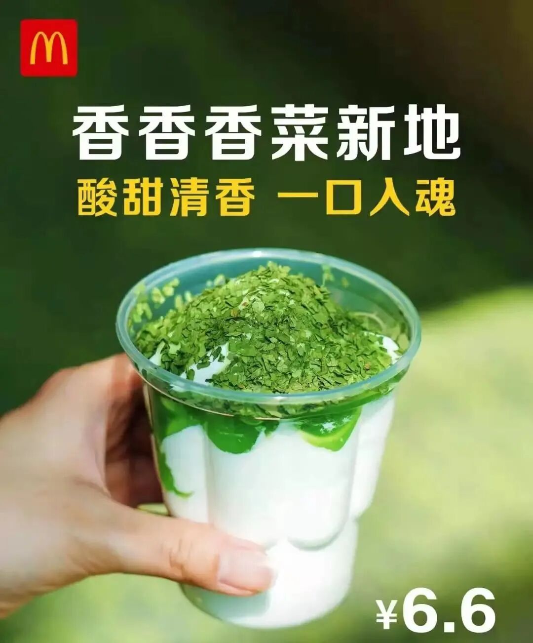 麦当劳于 2 月 21 日至 2 月 25 日限时上新新品「香香香菜新地」,本次新品融合香菜末与柠檬酱,致力于为消费者带来酸甜清香的「上头」感受。