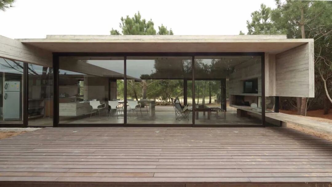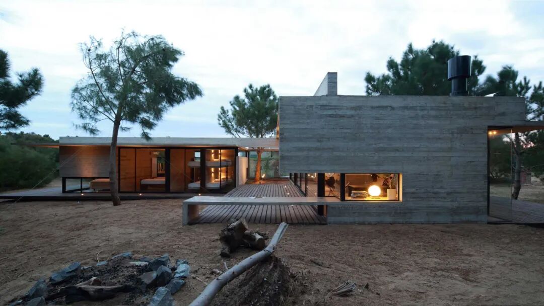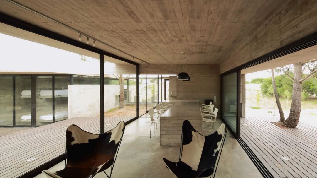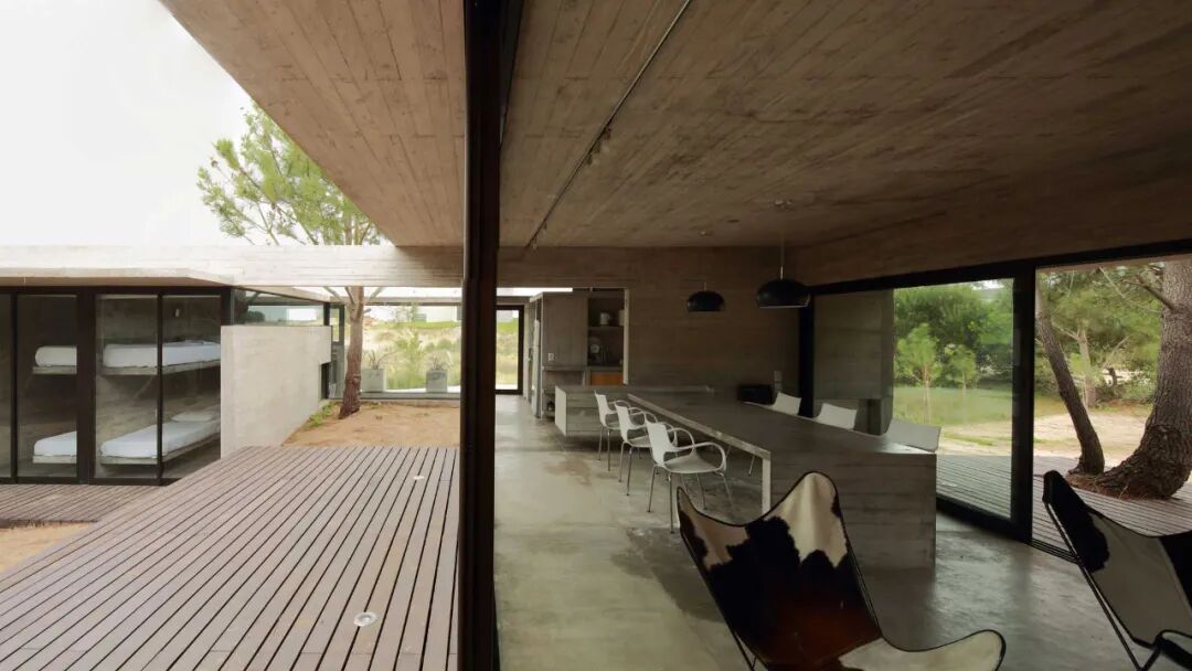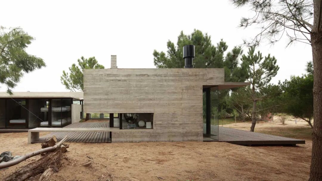 BESONIAS ALMEIDA  是一家阿根廷建筑事务所,他们的实践善于运用木模板混凝土这种材料,项目多数为一层的私人住宅和酒店,场地常位于自然环境中。在建筑形式上透露着巴塞罗那展览馆的气质,翻梁的结构让无柱空间成为可能。