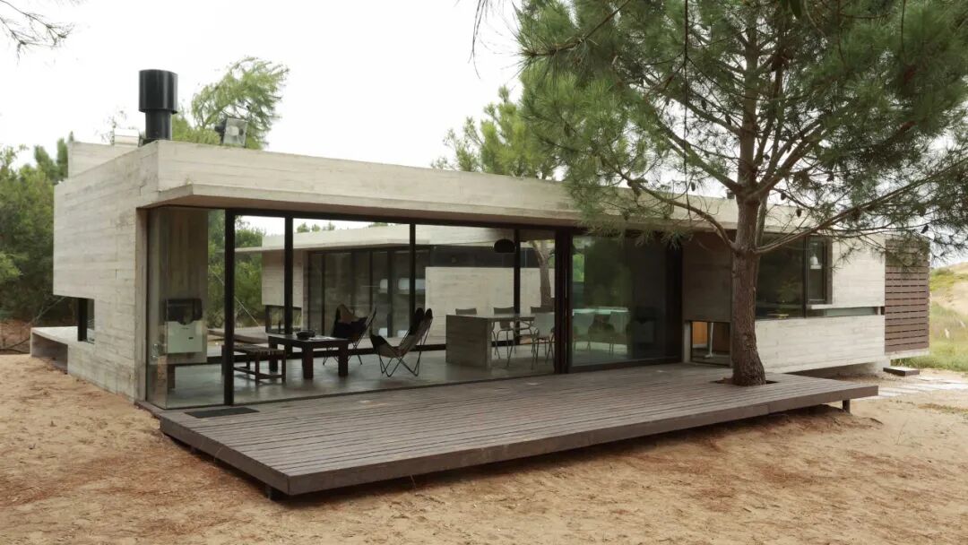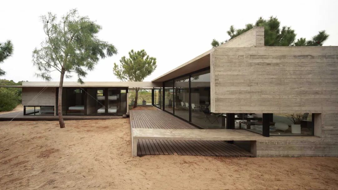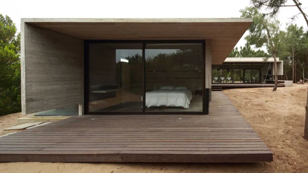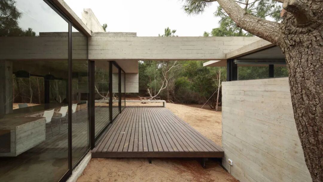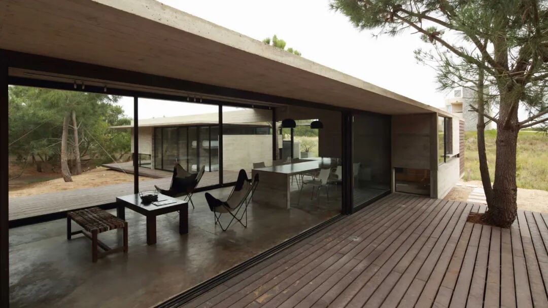 BESONIAS ALMEIDA  是一家阿根廷建筑事务所,他们的实践善于运用木模板混凝土这种材料,项目多数为一层的私人住宅和酒店,场地常位于自然环境中。在建筑形式上透露着巴塞罗那展览馆的气质,翻梁的结构让无柱空间成为可能。