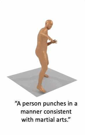 文本到运动是在给定输入文本提示的情况下生成运动的任务。输出运动预计既要实现文本描述,也要从数据分布中获得有效样本(即遵守一般人类能力和物理规则)。此外,对于每个文本提示,MDM 还期望匹配它的运动分布,而不仅仅是一个结果。