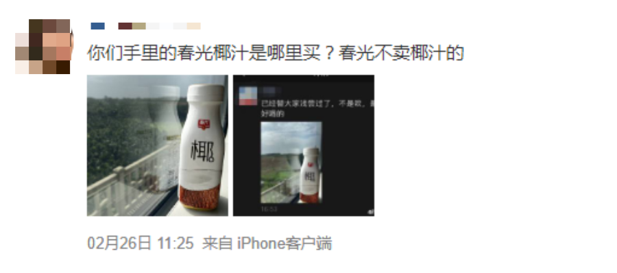关于网友们将其与椰树椰汁进行对比,春光椰汁花式“自我推销”