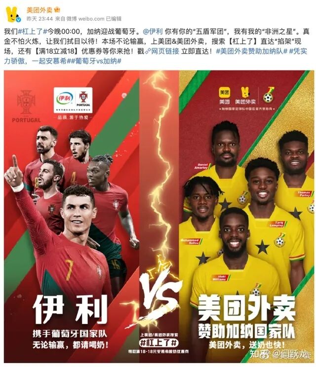 正发生2023-12-24 一口气赞助19支球队,这届世界杯美团成最大黑马! 最近卡塔尔世界杯还是每天成为大众生活中的热门话题,毕竟作为顶级体育赛事,还是充满了期待。不过今年虽然少了中国球队的参与,但这并没有影响到咱们国货品牌的营销发挥。 毕竟没有中国球队,还是可以有中国球迷队,比如最近美团外卖就组了18支“球迷队”,甚至还赞助了加纳球队,这一口气赞助19支球队,也是没谁了。 这18支球迷队也不是别人,而是我们熟悉的品牌们,并且每支球迷队都有自己的特色,用户甚至还可以在里面找到自己追球赛时候的状态,这波操作,只能说美团真会玩。 打造球迷画像 致敬中国球迷 这次世界杯营销中,也不乏一些出圈的案例,比如LV让C罗和梅西变相同款,还有海信的中国第一,以及转转的回收被砸坏的电视手机……这些无疑是赚足了大众的眼球。 而美团其实和前面的品牌一样,没有局限于中国球队,而是将目光放在其他地方,比如从球迷身份入手,也能玩出新的花样。 美团此次先将球迷的合照陈列在地铁站内,一路看过来的广告先去引起路上行人的注意力。 并在微博上发布了相关海报,且每队球迷都有不一样的风格。比如: 蜜雪冰城甜蜜cp队,情侣一起看追球,这样的搭配很难不爱~ 就着饺子看球赛,家里的氛围一下子就有了~ 上班看球赛,因联想而美好,但是这样真的不会被批评吗?(bu) 看比赛的来一杯,多爽快~ 边看球赛边护肤,精致快乐两不误~ 场内有德国男模队,场外就有我们中国海澜之家男模队~ 当然还有不看球技只看脸技队,还有饥动队,再冷也要加冰队……这些充满代入感的队伍,确实多多少少能在上面找到自己的影子。 左右滑动查看更多 都说一个巴掌拍不响,美团这样一下子联合这么多品牌一起打造这群球迷队,可以说这波操作格局大了,不仅让感受到不同场景下的观赛氛围,也很好抓住了“世界杯因球迷而伟大”的洞察。 毕竟在社交平台上,我们总是能见到球迷看球的各种场景。无论是在家自己看球,还是深夜敷着面膜,或者边喝啤酒边呐喊……这些不就是上面所呈现的样子嘛。 可以说,这样确实很有牌面,也能让大众眼前一亮,毕竟专门从球迷身份入手的品牌,在这次世界杯中确实是少见的,甚至还与这么多品牌联合,就几乎没有。 所以总的来说,这波操作在一定层面上还是值得肯定的。 不过要说这个案例的槽点嘛,其实还是有点的,比如联动的品牌太多,用户真的能记住嘛?又或者打了这么多广告,是否能都上心,而这也是很多品牌营销都会遇到的问题,同时这个案例中其实还是过于聚焦自我。 虽然是联动,但美团其实一直都是在强调自己,一直围绕着自己的“种类全”的卖点展开,商业性过强,所以相对的也弱化了营销的共鸣和情感。 但同样的,这些海报的口号也是基于合作品牌的slogan进行延伸的,比如“怕上火,上美团外卖”“美团外卖,男人的衣柜”,这些“XXX+美团外卖”的句式,又多多少少让品牌与美团外卖实现了相互融合,并且这种冲突也再次凸显了“美团外卖,送啥都快”的主题。 甚至在线下,美团外卖还让自己的IP形象小袋鼠深入到这些品牌门店中,以“借”的方式去与这些品牌联合推出广告语,也更加诚意满满,并且还能增加话题度。 打破传统思维 美团外卖此次世界杯的另类玩法 其实总的来说,美团在此次世界杯的也展现出了很多别样的玩法,除了前面从球迷身份出发组建球迷队,最近更是跳过热门战队,与加纳这一冷门的战队进行合作,不仅相对减少了营销成本,也同样玩出了新花样。 在赞助加纳队的这场反向营销中,也取得很明显的成效,这种打破惯有思维的方式,也确实让消费者眼前一亮,所以引起讨论也是必然的事情。并且由于加纳作为世界杯最年纪最小的战队,也有利于品牌塑造年轻化的形象,无疑实现了双赢。 而美团与加纳合作过程中最出圈的,可能就是加纳国家队球员身着美团外卖与粉丝互动的视频,比如看起来像外卖小哥的训练场景,还有宣传视频中加纳队员穿着美团服在草地上奔跑的样子,以及穿着美团训练服的祝福视频,都很让喜观众出戏,也有网友直呼更像是外卖小哥的聚会。 并且在加纳队首场对战葡萄牙队的比赛前,微博上更是出现了微博话题#杠上了,因为葡萄牙的赞助商是伊利,所以也被网友称这其实也是美团外卖和伊利杠上了。而伊利说了那句“携手葡萄牙国家队,无论输赢,都请喝奶”,美团外卖则对应:“美团外卖,送奶也快!”就是说,这波对战也属实很不一样。 再回归到此次的营销中,也是联动多品牌打造球迷队,这样与消费者近距离贴近方式,也确实很快引起共鸣。 从对战到联动,美团可谓是拿捏了流量密码。所以通过这两次的营销来看,我们也可以总结出美团在营销上的一些简单思路,先从消费者视角入手,并基于他们的需求独辟蹊径,逆着他们的思维来做营销,反而能够擦出新的火花。 最后,其实无论哪个营销,美团都在不断通过场景化去强化自身的品牌定位,让美团外卖都都能送这一理念更加深入人心。 美团外卖打广告 打的是存在感 其实美团现阶段的知名度已经很高了,所以现在品牌其实打的是存在感,反复出现在受众的面前,从而持续性的延伸美团的各种消费场景。 而从美团邀请杨幂拍搞笑广告,到前面提到的赞助加纳战队以及18支球迷战队,可以说美团的世界杯广告不放过各个角度,实现全面场景覆盖。而这