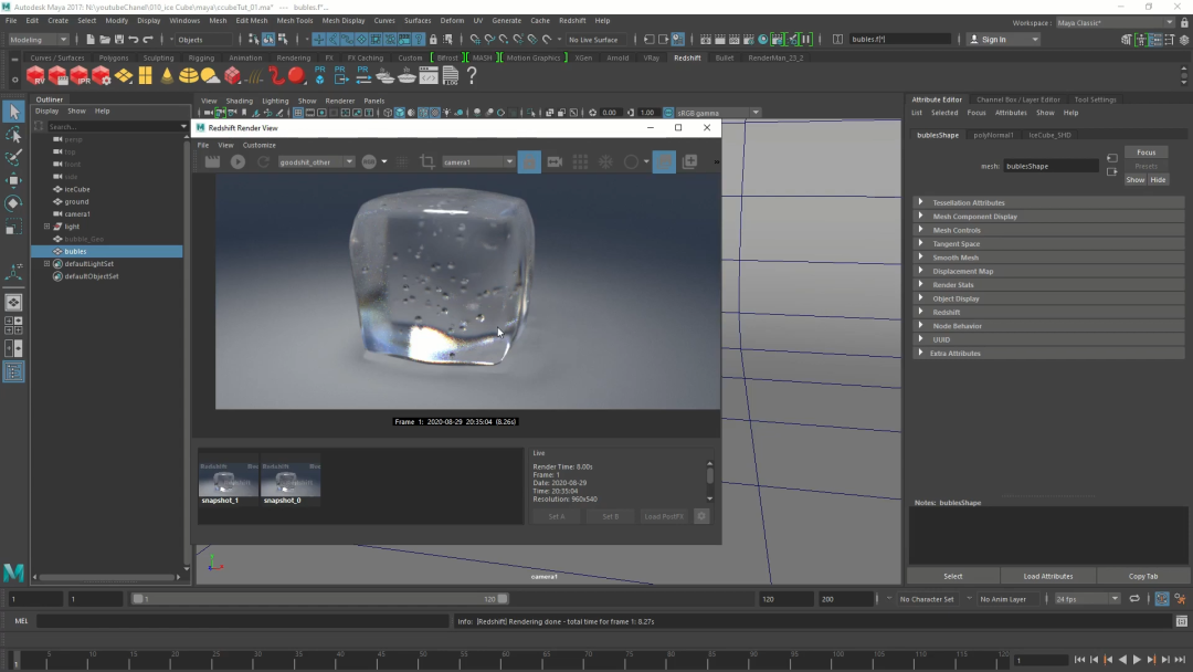 虽然十五都过啦,很多人地方还在冰天雪地中。上期教大家做了雪球,这次的难度就升级啦,本期为大家带来的是如何使用Maya做出晶莹剔透的冰块,先来看看成品图~(本案例是用redshift渲染器进行渲染,理解原理也类似效果可以在其他渲染器试验哦~)