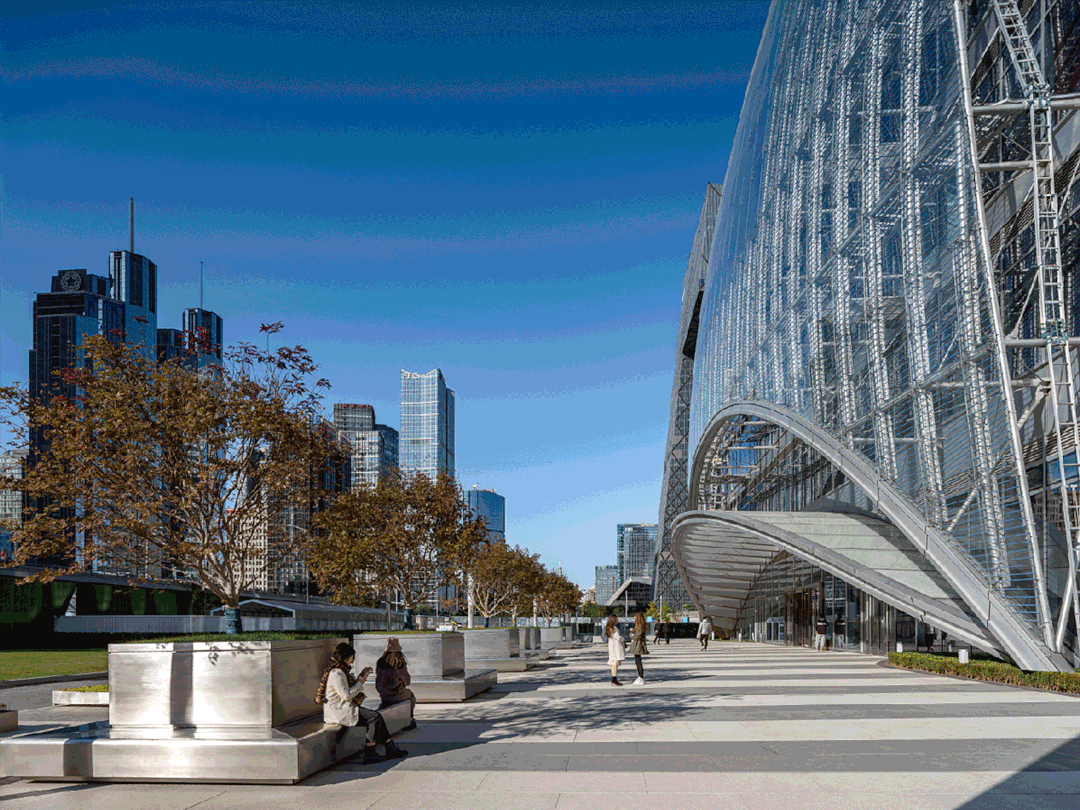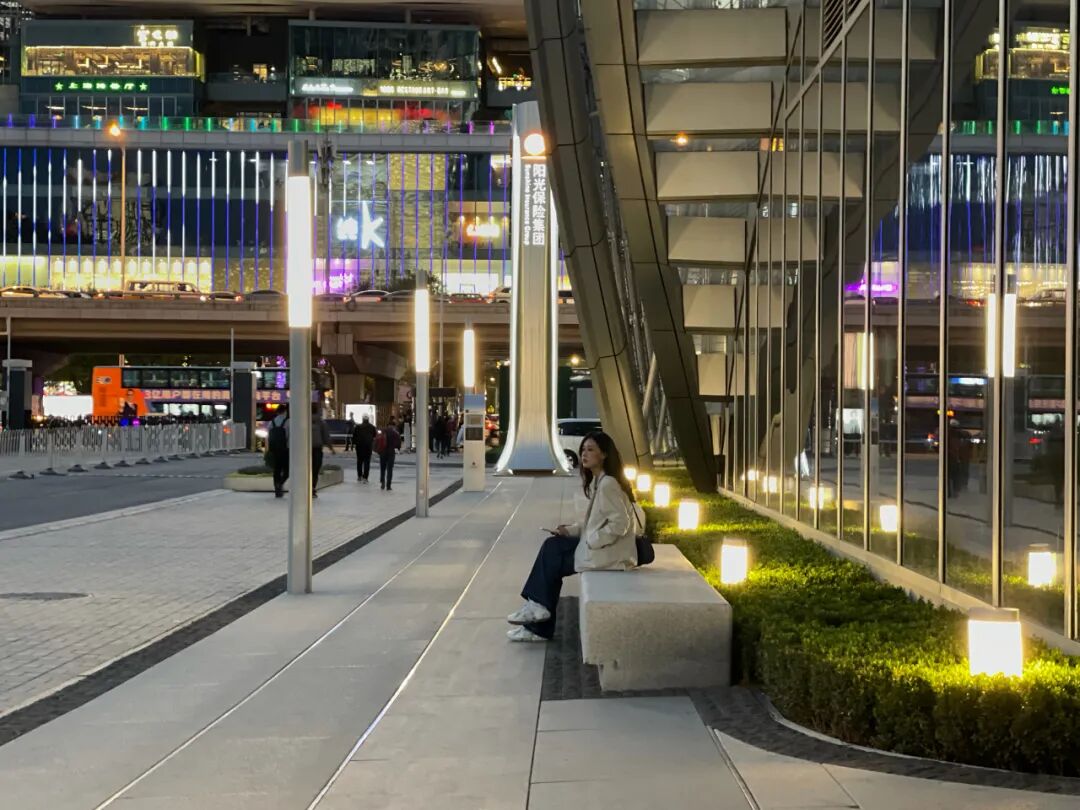 阳光金融中心与三星中国大厦形成的夹缝空间 (gap space) 是易兰本次设计的焦点之一。易兰从理解CBD城市景观独特的形式美感,公共参与度高的场所特性中提取推敲具有可行性、包容性的概念---办公街道场所精神(Workplace Street Placemaking)。该概念的提出旨在帮助场地从被动负向的街道空间向活力开放的街道空间转变,使建筑间隙空间转变成一个具体场所的记忆点。