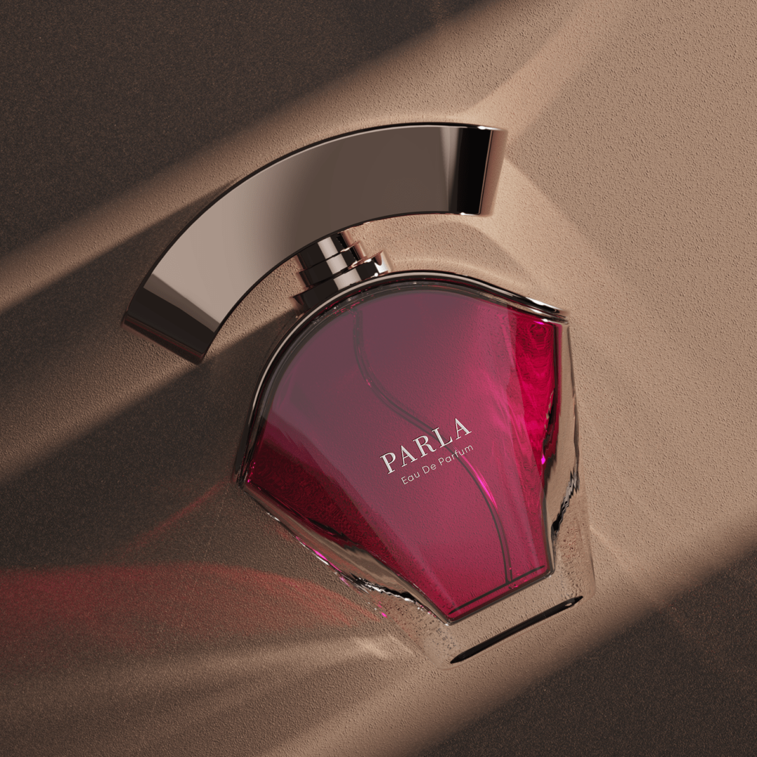 Parla是我为两个 "Render weekly & Color weekly "Instagram挑战提出的想法。除了这个设计表面的简单和柔软外,我还试图创造一个奢华的对象。为此,还使用了 "波斯红 "的颜色,与瓶子的形状相结合,创造出一种极简和吸引人的风格。Parla的名字在土耳其语中也是闪亮的意思,这使香水的形状和光线的反射相一致。