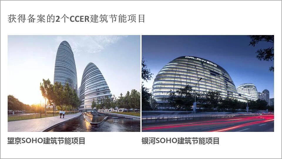 吴伟光教授指出,作为规划设计单位,建筑节能和林业碳汇可以作为我们未来发展重点方向。其中,建筑节能可以成为CCER(中国核证自愿减排量交易机制)碳汇项目。他提到,目前获得备案的2个建筑节能CCER项目分别是北京望京SOHO和北京银河SOHO。值得祝贺的是,这两个SOHO项目均是易兰规划设计院深度参与设计的项目。