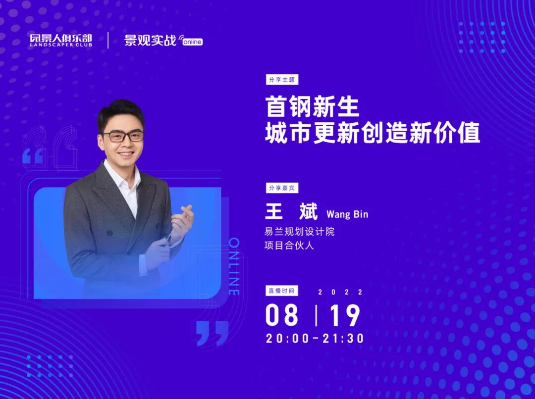 8月19日(周五)晚上20:00,易兰规划设计院项目合伙人王斌先生为大家带来景观实战online60讲分享,《首钢新生-城市更新创造新价值》!带我们一起走进首钢的前世今生,从规划视角下了解设计逻辑,看城市更新如何创造新价值。首播免费,回看付费39.9元!(俱乐部会员免费回看)