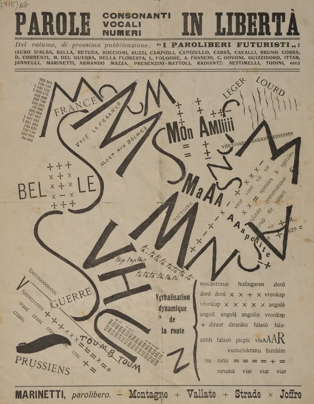 未来主义是20世纪首个前卫运动。1909年2月20日,法兰克意大利语诗人菲利波·托马索·马里内蒂于巴黎《费加罗报》头版发表宣言,并以意大利米兰为中心,在诗歌、绘画、雕塑、音乐、舞蹈和建筑设计等各个当代文化领域进行革命。在宣言发表后的35年中,未来主义试图通过一系列狂热的活动宣传一种具有实验性和战斗性的文化实践模式,同时秉持与工业革命一致的价值观——速度、效率,以及永不停步的科学和技术发展。