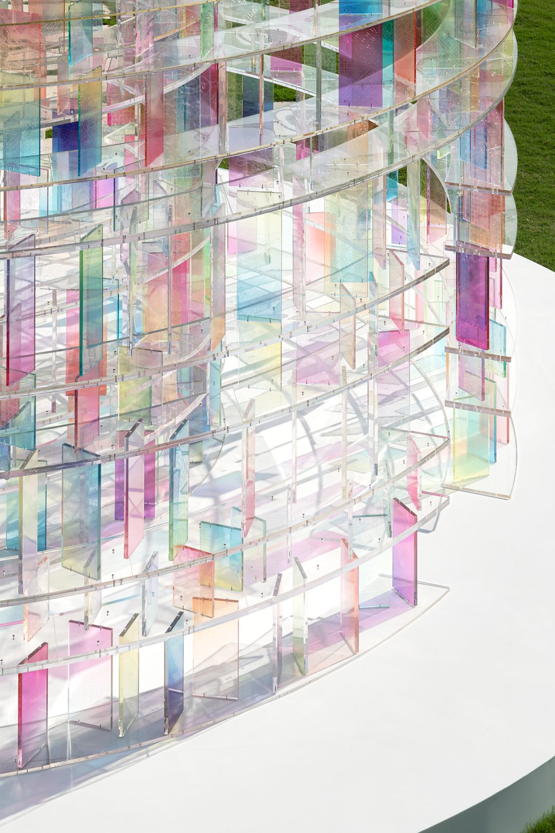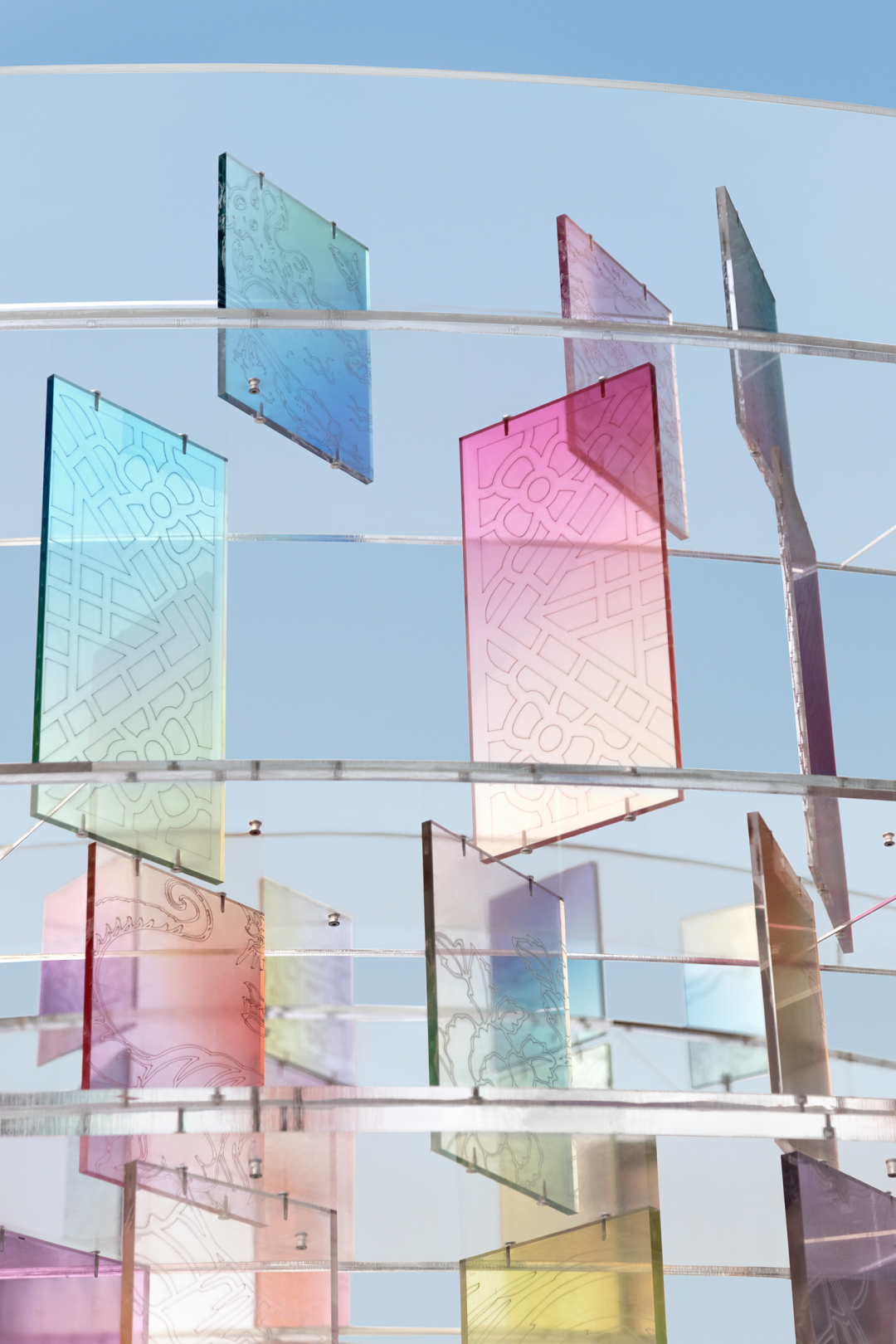 菲涅尔透镜、钢缆、不锈钢结构,270 × 330 cm