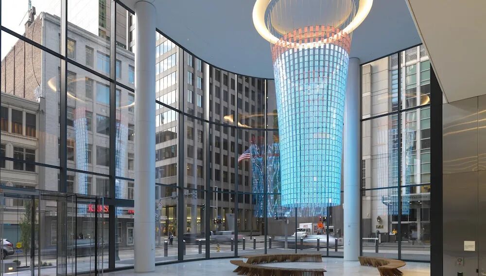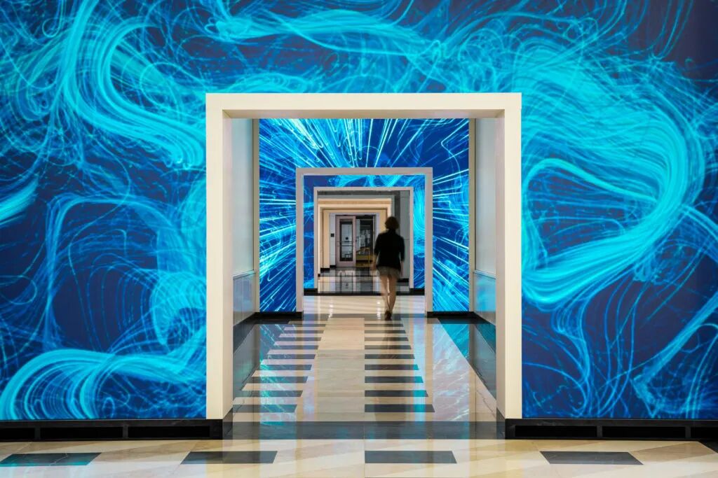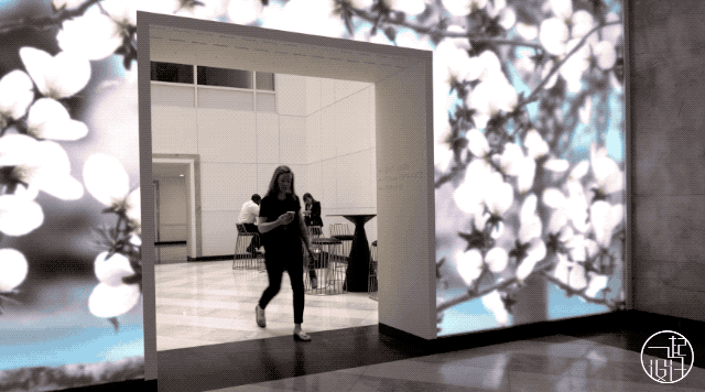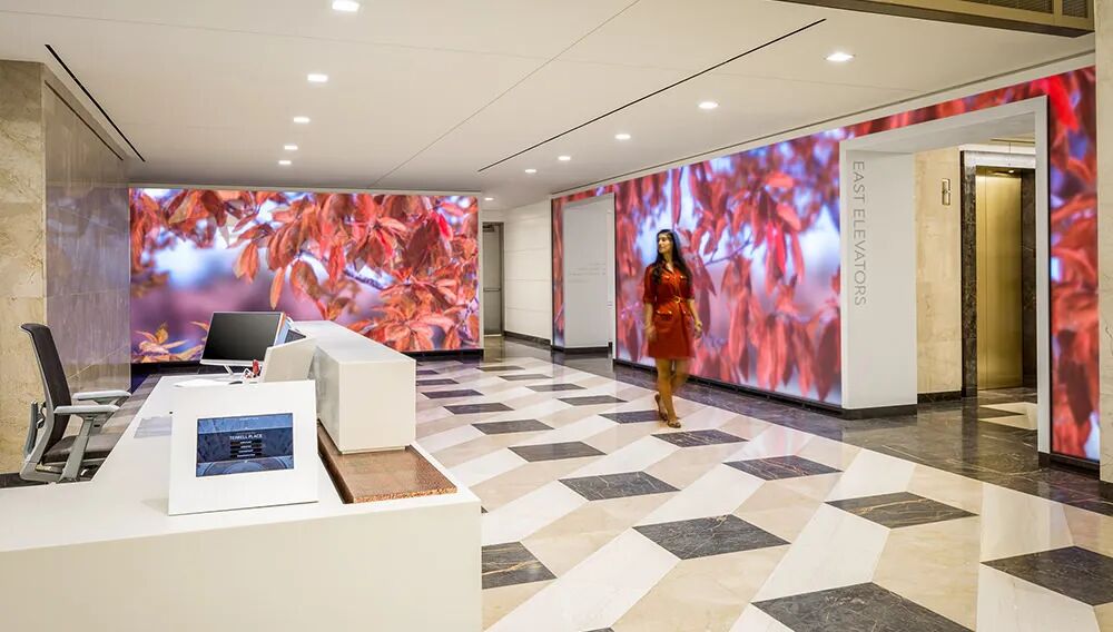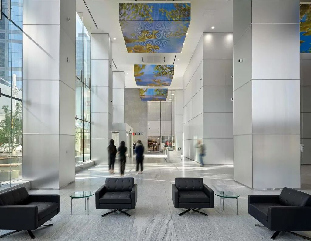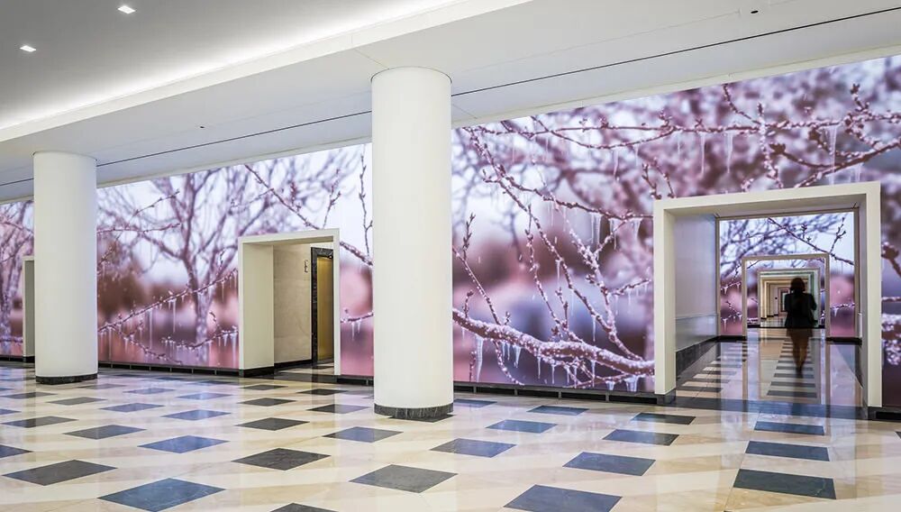 ESI 为大厅设计了一个媒体装置,可以对路人的步伐做出反应,使空间感觉宽敞而充满活力。