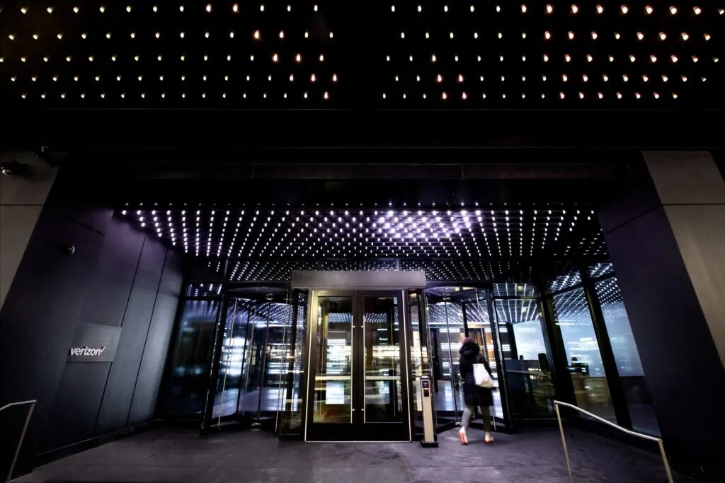 雕塑看似随机的颜色和光线图案实际上是华纳媒体内容的算法生成抽象。